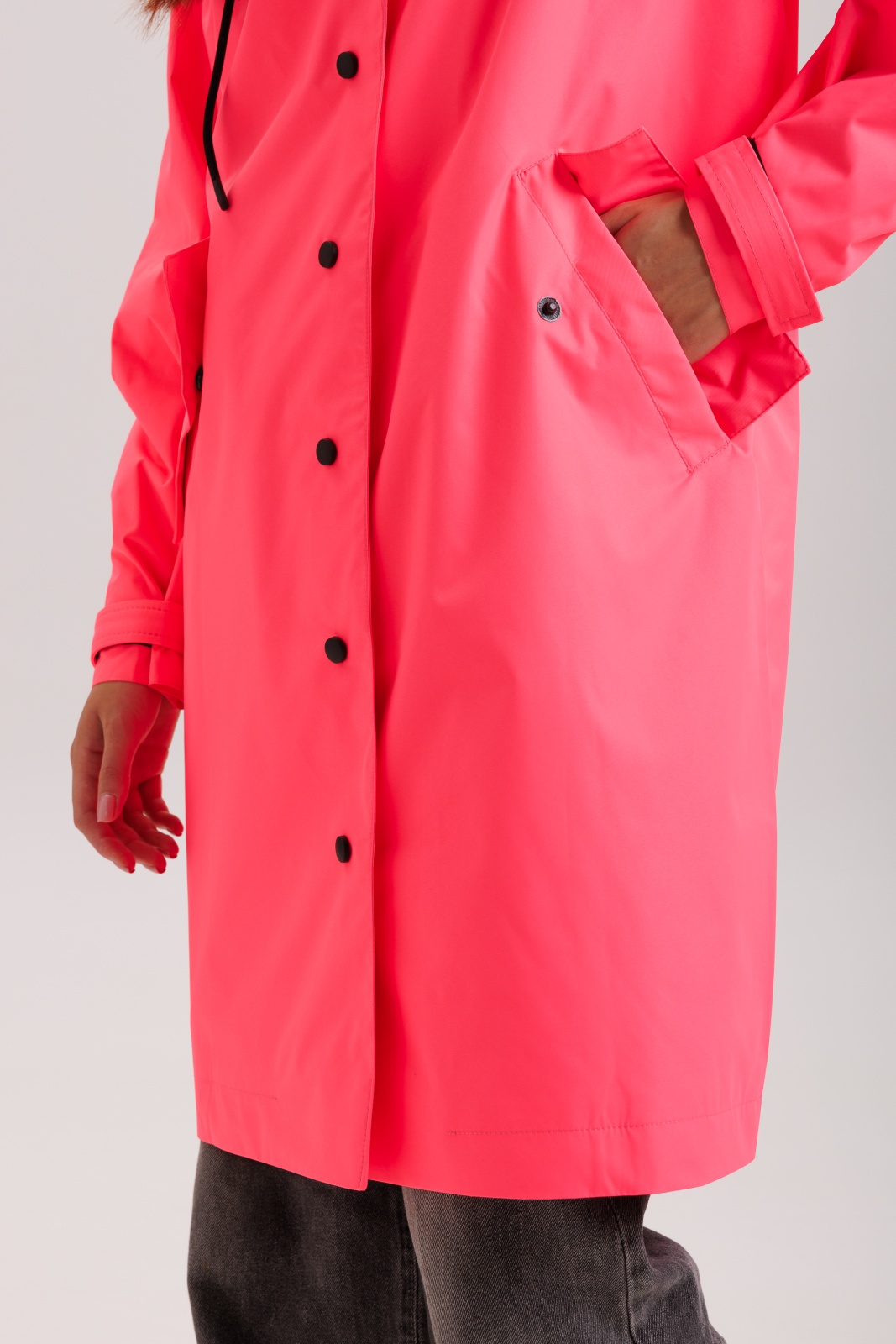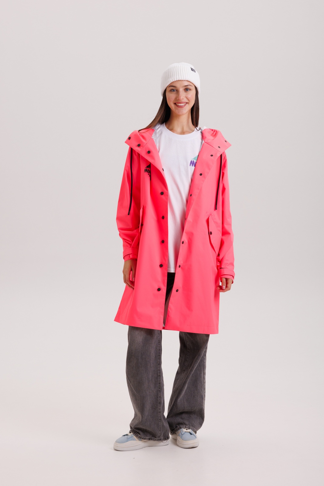 Нежный розовый цвет привносит свежесть и позитив в повседневный образ. Модель разработана в универсальном стиле, подходит как мужчинам, так и женщинам. Плащ комфортно носится при температуре от -5°C до +10°C, идеально для межсезонья.