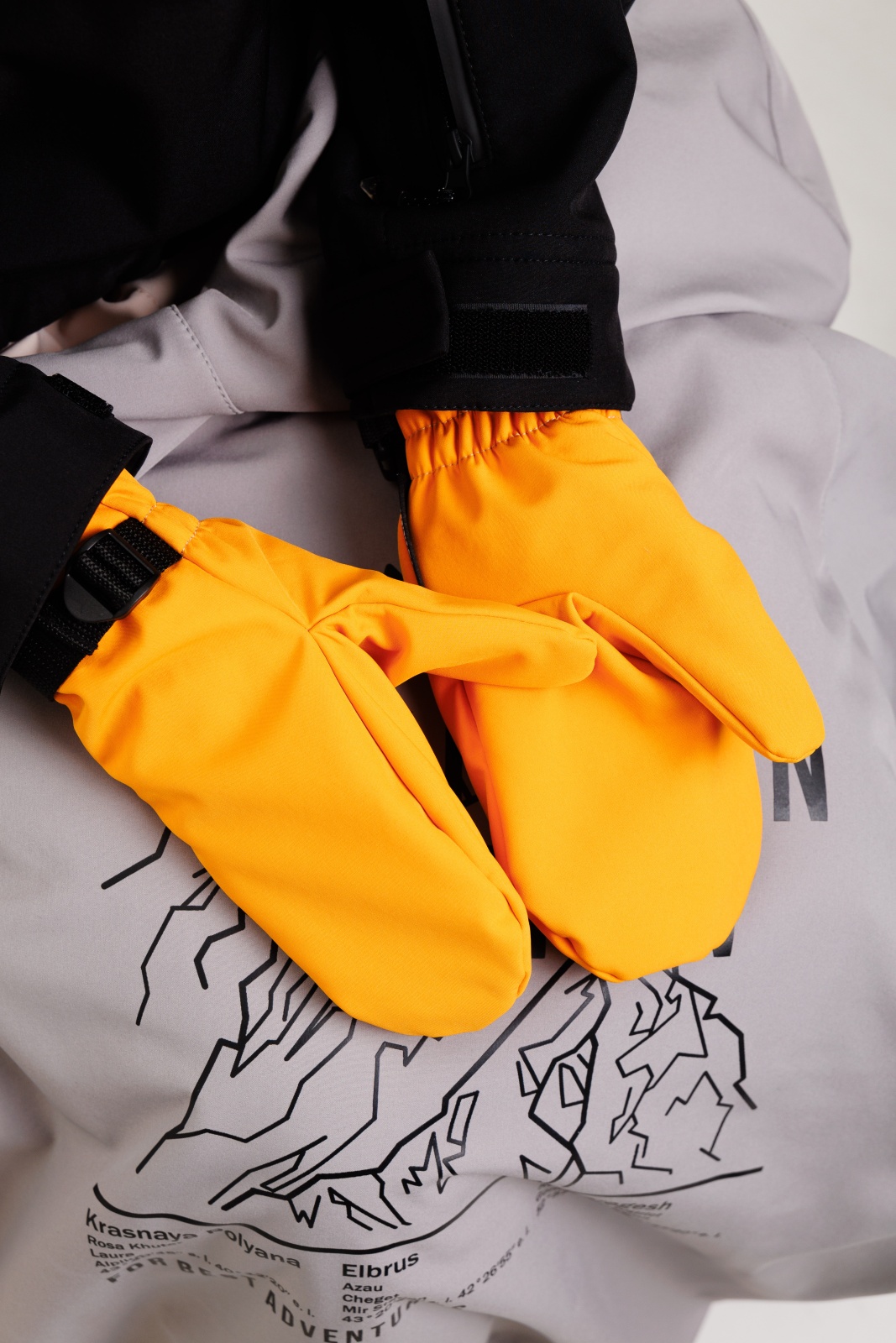• Резинка и стропа на запястье: препятствуют попаданию снега внутрь варежек, обеспечивая дополнительную защиту.
